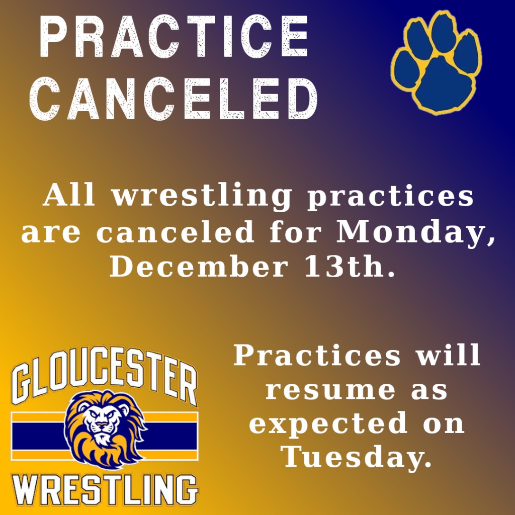 Evening practices for our Youth and Tots wrestlers should remain unchanged.