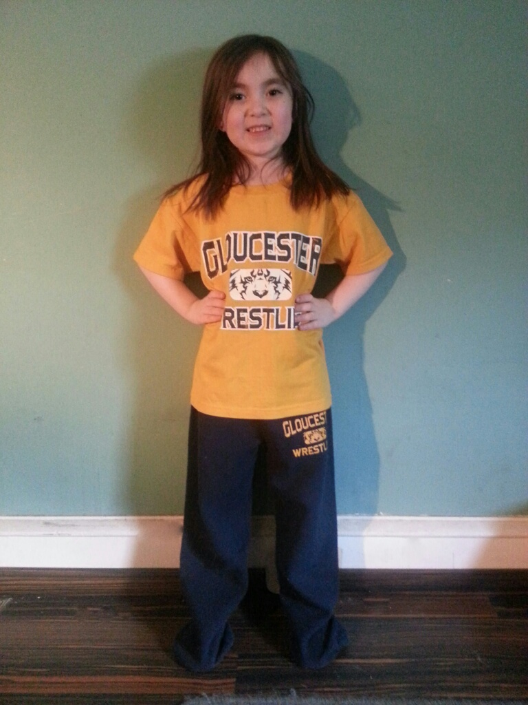 Gear up! Support our wrestlers and show some team spirit! Prices are reasonable enough that you can get the entire family outfitted! Don’t forget Grandma and Grandpa, little brother, and even baby sister (like this awesome supportive kid sister here and here)!